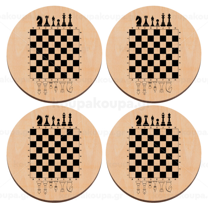 Σκάκι, ΣΕΤ x4 Σουβέρ ξύλινα στρογγυλά plywood (9cm)