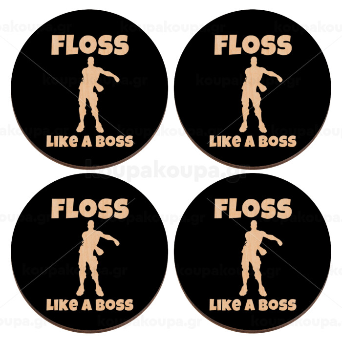 Fortnite Floss Like a Boss, ΣΕΤ x4 Σουβέρ ξύλινα στρογγυλά plywood (9cm)