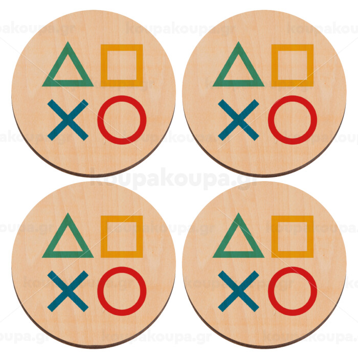 Gaming Symbols, ΣΕΤ x4 Σουβέρ ξύλινα στρογγυλά plywood (9cm)