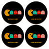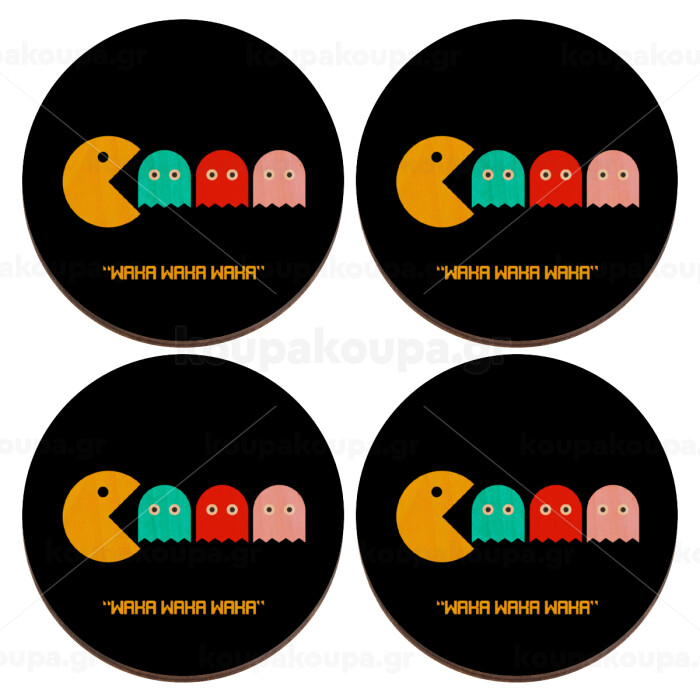 Pacman waka waka waka, ΣΕΤ x4 Σουβέρ ξύλινα στρογγυλά plywood (9cm)