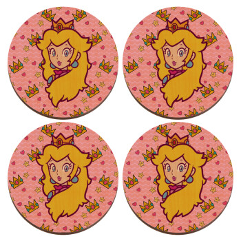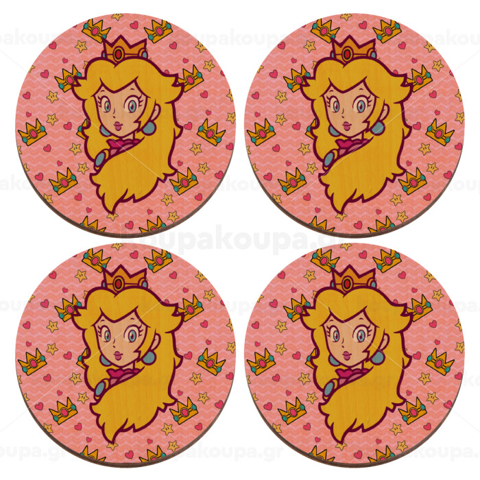 Princess Peach, ΣΕΤ x4 Σουβέρ ξύλινα στρογγυλά plywood (9cm)