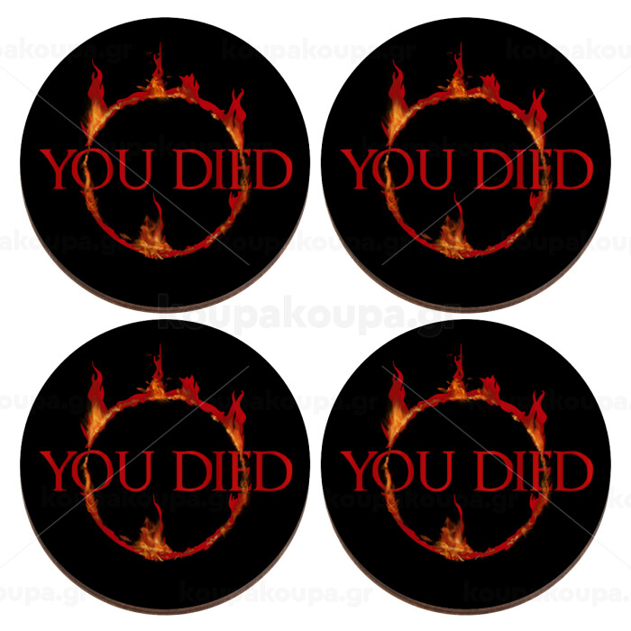 You Died | Dark Souls, ΣΕΤ x4 Σουβέρ ξύλινα στρογγυλά plywood (9cm)