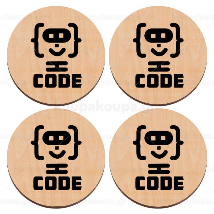 Code Heroes symbol, ΣΕΤ x4 Σουβέρ ξύλινα στρογγυλά plywood (9cm)