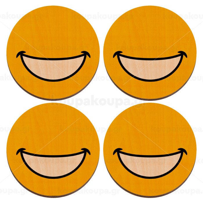 Χαμογέλα, ΣΕΤ x4 Σουβέρ ξύλινα στρογγυλά plywood (9cm)