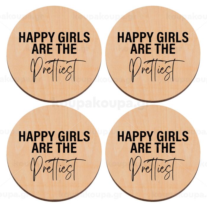 Happy girls are the prettiest, ΣΕΤ x4 Σουβέρ ξύλινα στρογγυλά plywood (9cm)