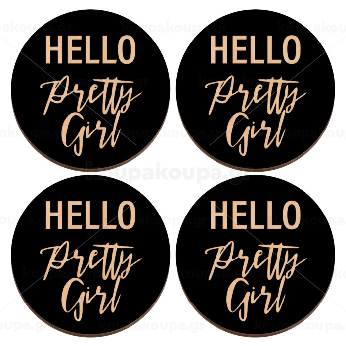 Hello pretty girl, ΣΕΤ x4 Σουβέρ ξύλινα στρογγυλά plywood (9cm)