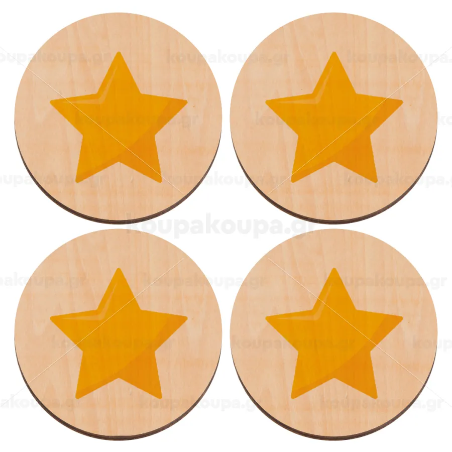 Star, ΣΕΤ x4 Σουβέρ ξύλινα στρογγυλά plywood (9cm)