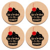 Life is too short, to skip Dessert, ΣΕΤ x4 Σουβέρ ξύλινα στρογγυλά plywood (9cm)