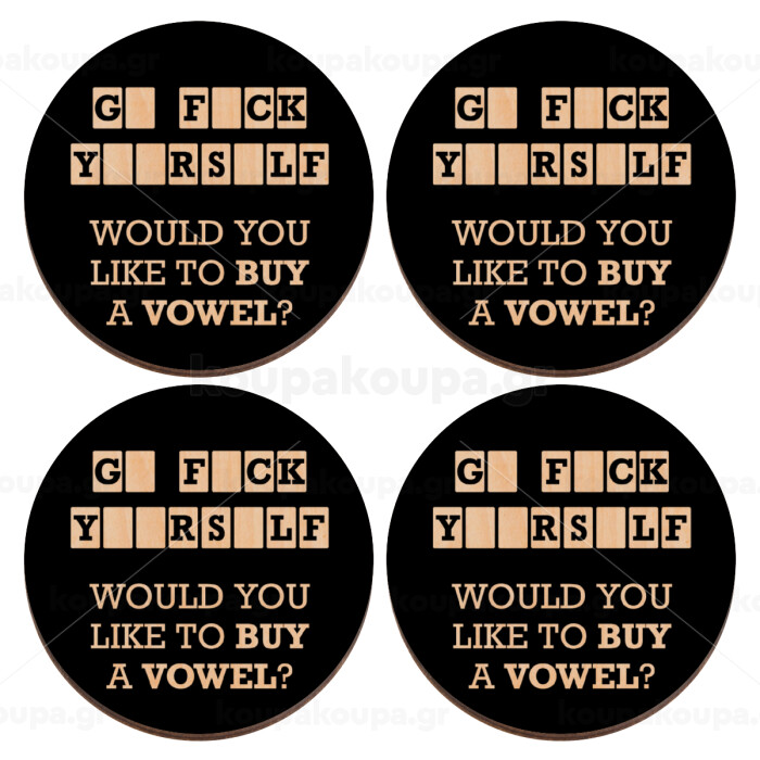 Wheel of fortune, go f..k yourself, ΣΕΤ x4 Σουβέρ ξύλινα στρογγυλά plywood (9cm)