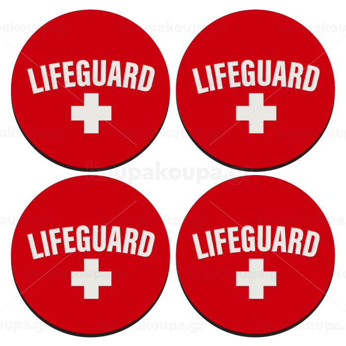 Lifeguard, ΣΕΤ 4 Σουβέρ ξύλινα στρογγυλά (9cm)