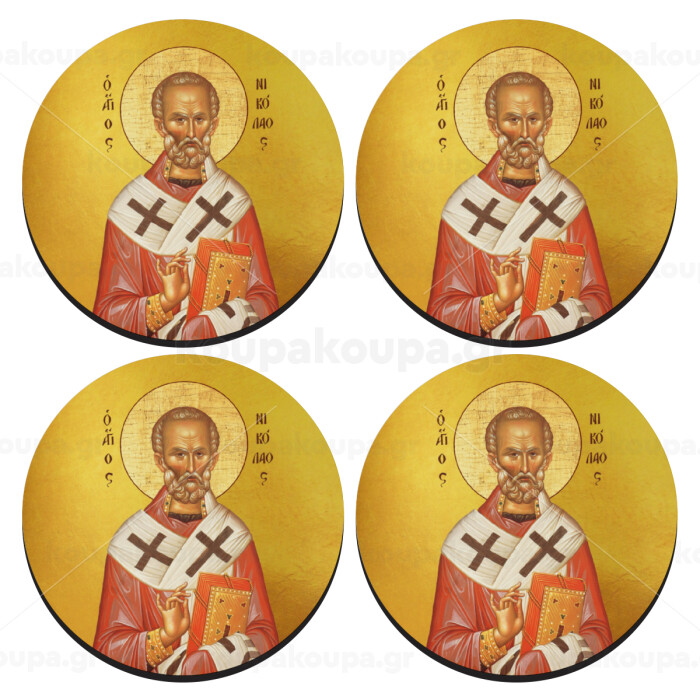 Άγιος Νικόλαος, ΣΕΤ 4 Σουβέρ ξύλινα στρογγυλά (9cm)