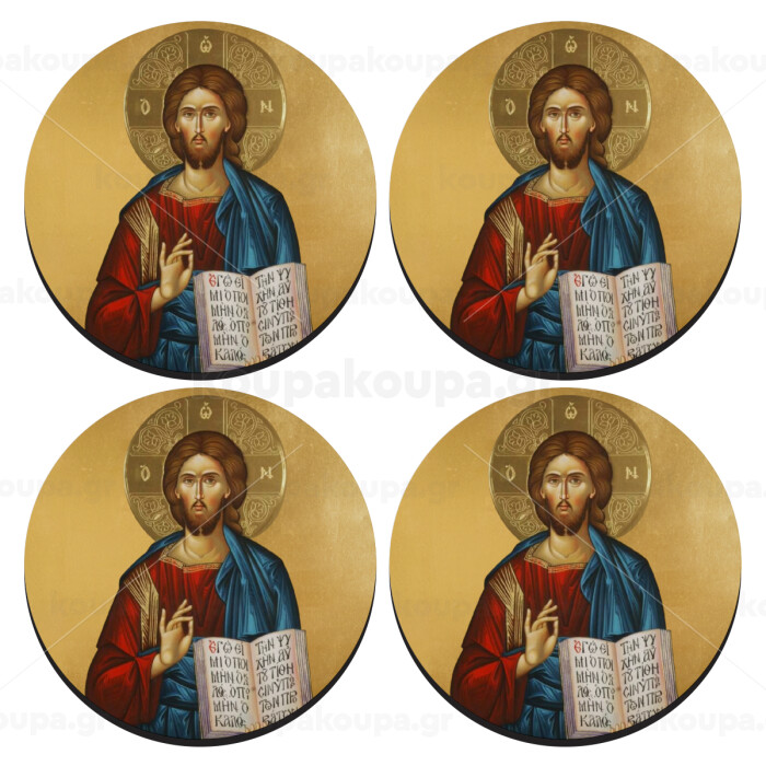 Ιησούς, ΣΕΤ 4 Σουβέρ ξύλινα στρογγυλά (9cm)