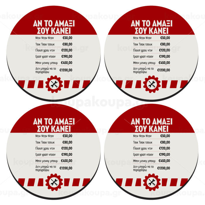 Annoying Noise in Car, ΣΕΤ 4 Σουβέρ ξύλινα στρογγυλά (9cm)