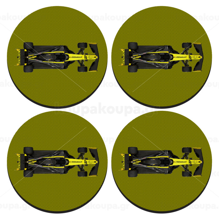Renault Formula 1, ΣΕΤ 4 Σουβέρ ξύλινα στρογγυλά (9cm)