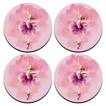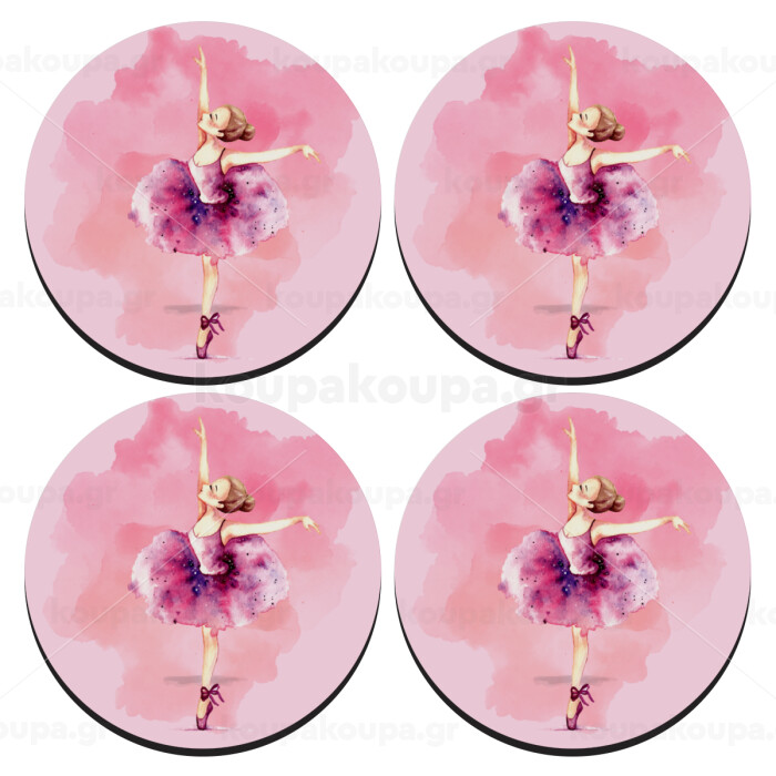 Ballerina watercolor, ΣΕΤ 4 Σουβέρ ξύλινα στρογγυλά (9cm)