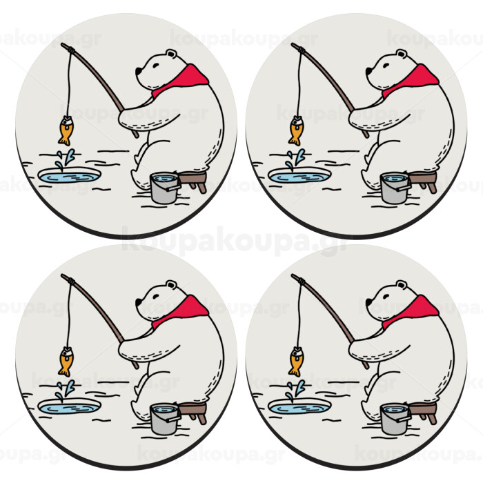 Αρκούδα ψαρεύει, ΣΕΤ 4 Σουβέρ ξύλινα στρογγυλά (9cm)