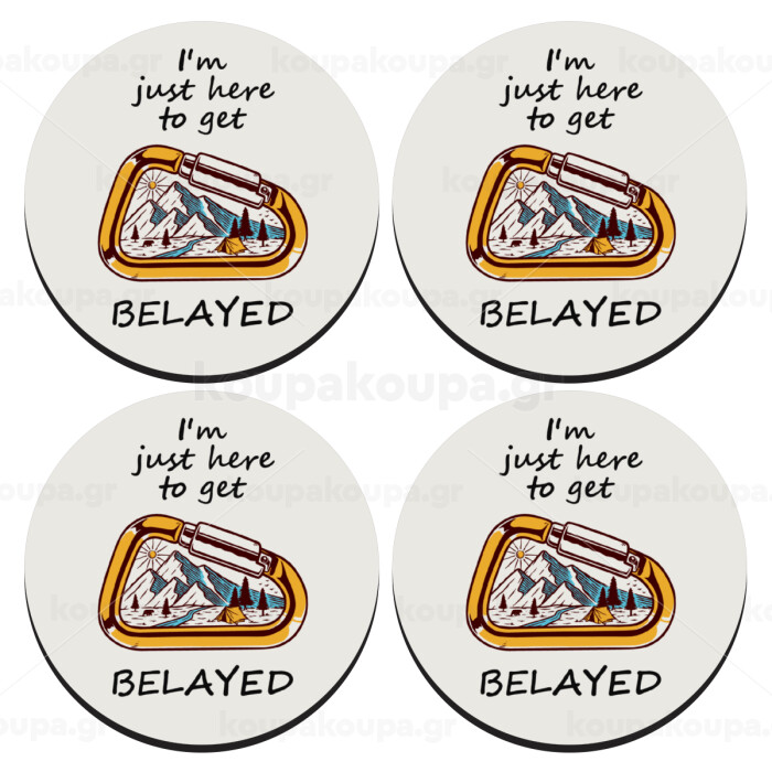 I'm just here to get Belayed, ΣΕΤ 4 Σουβέρ ξύλινα στρογγυλά (9cm)