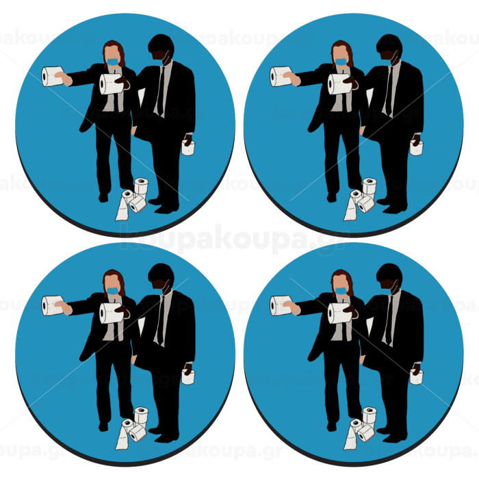 Pulp Fiction 3 meter away, ΣΕΤ 4 Σουβέρ ξύλινα στρογγυλά (9cm)