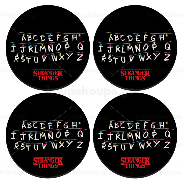 Stranger Things ABC, ΣΕΤ 4 Σουβέρ ξύλινα στρογγυλά (9cm)