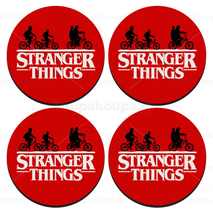 Stranger Things red, ΣΕΤ 4 Σουβέρ ξύλινα στρογγυλά (9cm)