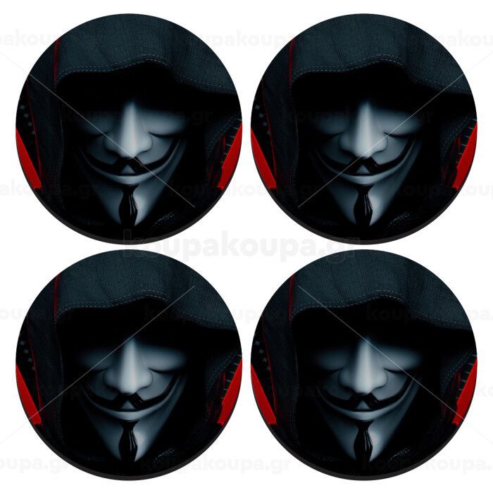 V for Vendetta, ΣΕΤ 4 Σουβέρ ξύλινα στρογγυλά (9cm)