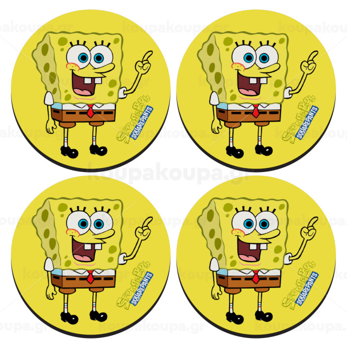 Μπομπ Σφουγγαράκης character, ΣΕΤ 4 Σουβέρ ξύλινα στρογγυλά (9cm)