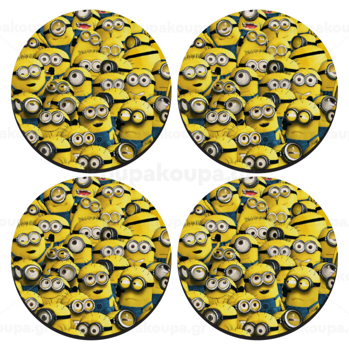 All the minions, ΣΕΤ 4 Σουβέρ ξύλινα στρογγυλά (9cm)
