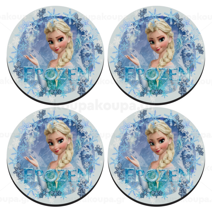 Frozen Elsa, ΣΕΤ 4 Σουβέρ ξύλινα στρογγυλά (9cm)