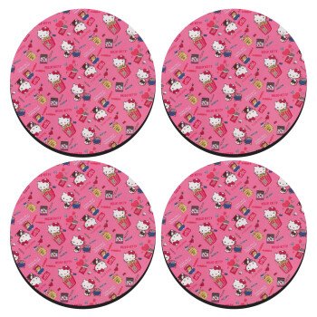 Hello kitty, ΣΕΤ 4 Σουβέρ ξύλινα στρογγυλά (9cm)