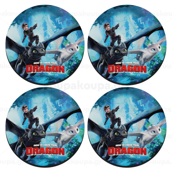 How to train your dragon, ΣΕΤ 4 Σουβέρ ξύλινα στρογγυλά (9cm)