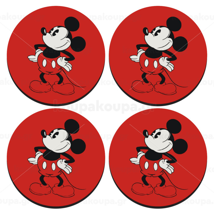 Mickey Classic, ΣΕΤ 4 Σουβέρ ξύλινα στρογγυλά (9cm)