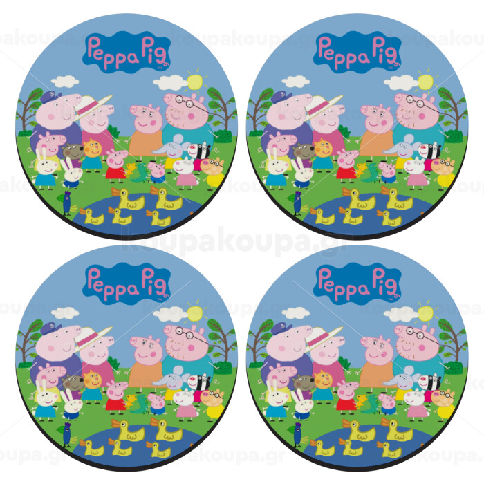 Peppa pig Family, ΣΕΤ 4 Σουβέρ ξύλινα στρογγυλά (9cm)