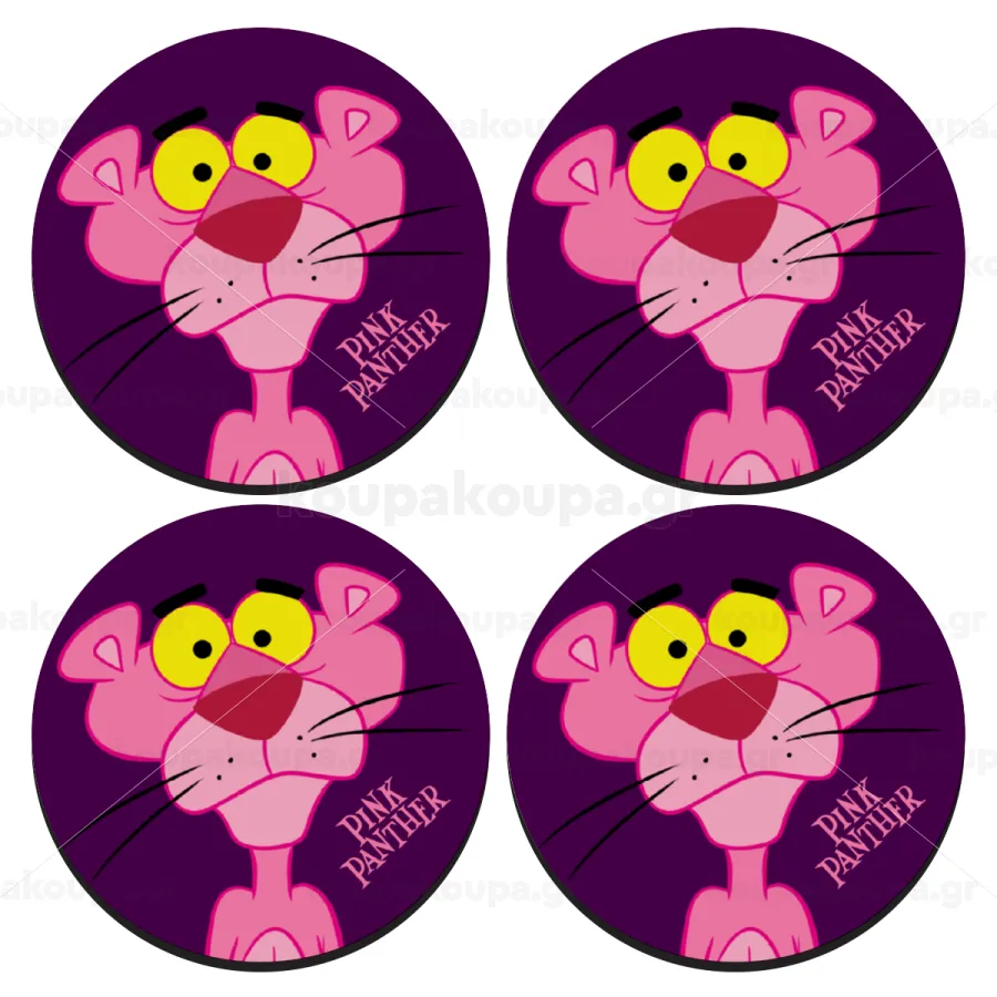 Pink Panther cartoon, ΣΕΤ 4 Σουβέρ ξύλινα στρογγυλά (9cm)