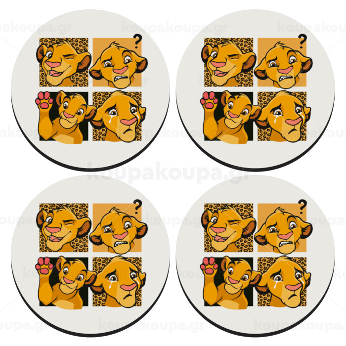 Simba, lion king, ΣΕΤ 4 Σουβέρ ξύλινα στρογγυλά (9cm)
