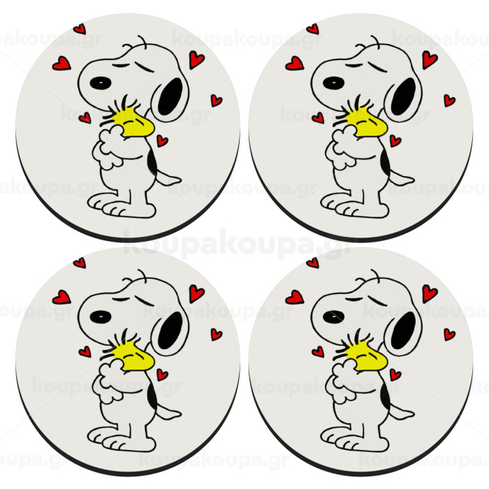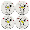 Snoopy Love, ΣΕΤ 4 Σουβέρ ξύλινα στρογγυλά (9cm)