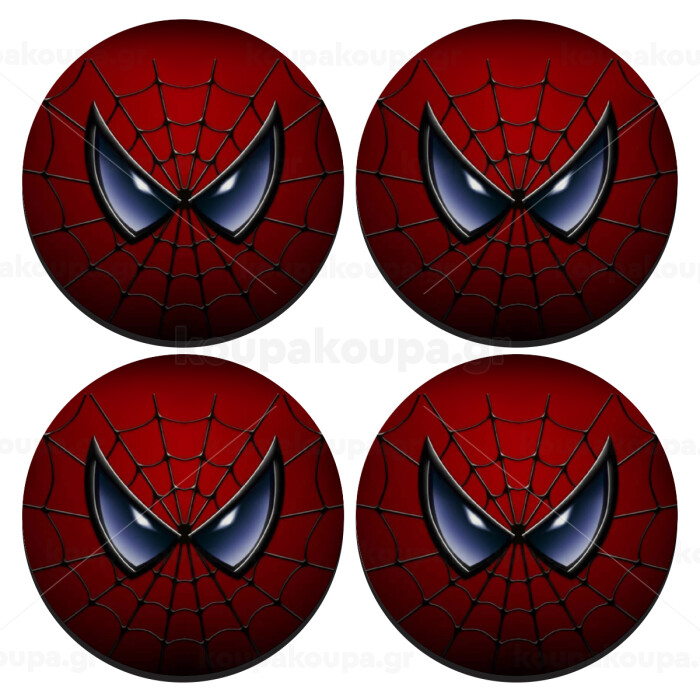 Spiderman mask, ΣΕΤ 4 Σουβέρ ξύλινα στρογγυλά (9cm)
