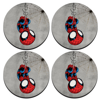 Spiderman upside down, ΣΕΤ 4 Σουβέρ ξύλινα στρογγυλά (9cm)