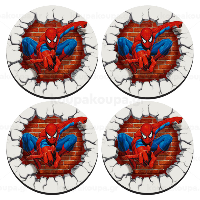 Spiderman wall, ΣΕΤ 4 Σουβέρ ξύλινα στρογγυλά (9cm)
