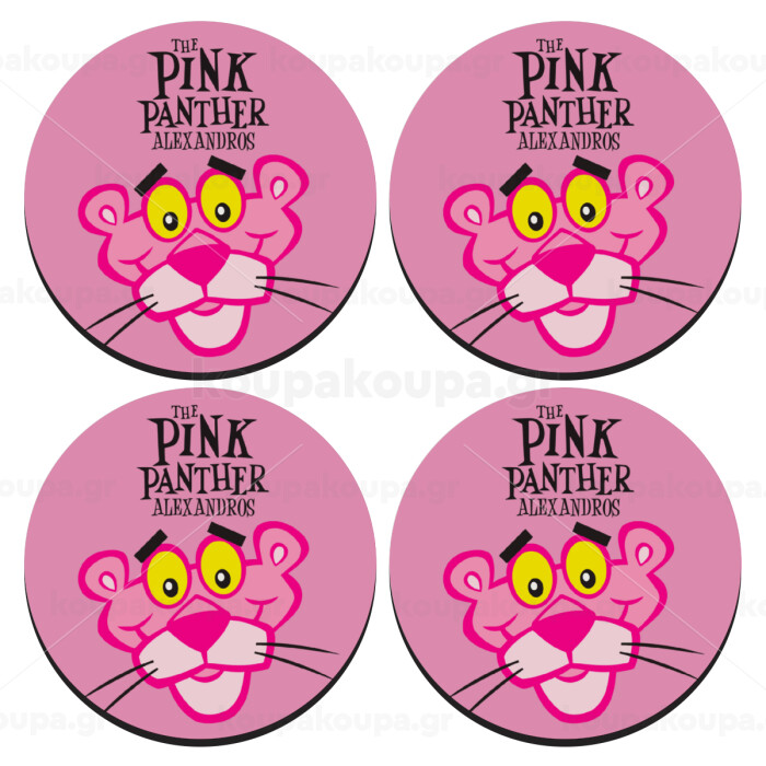 The pink panther, ΣΕΤ 4 Σουβέρ ξύλινα στρογγυλά (9cm)