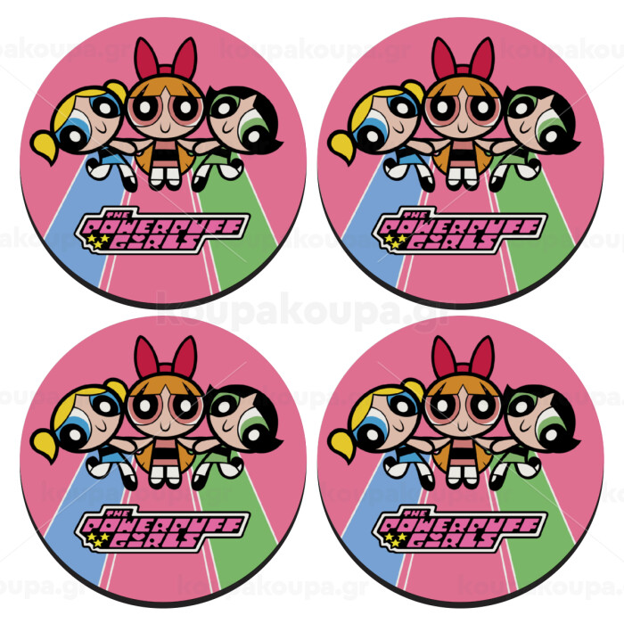 The powerpuff girls , ΣΕΤ 4 Σουβέρ ξύλινα στρογγυλά (9cm)