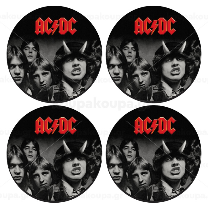 AC/DC angus, ΣΕΤ 4 Σουβέρ ξύλινα στρογγυλά (9cm)