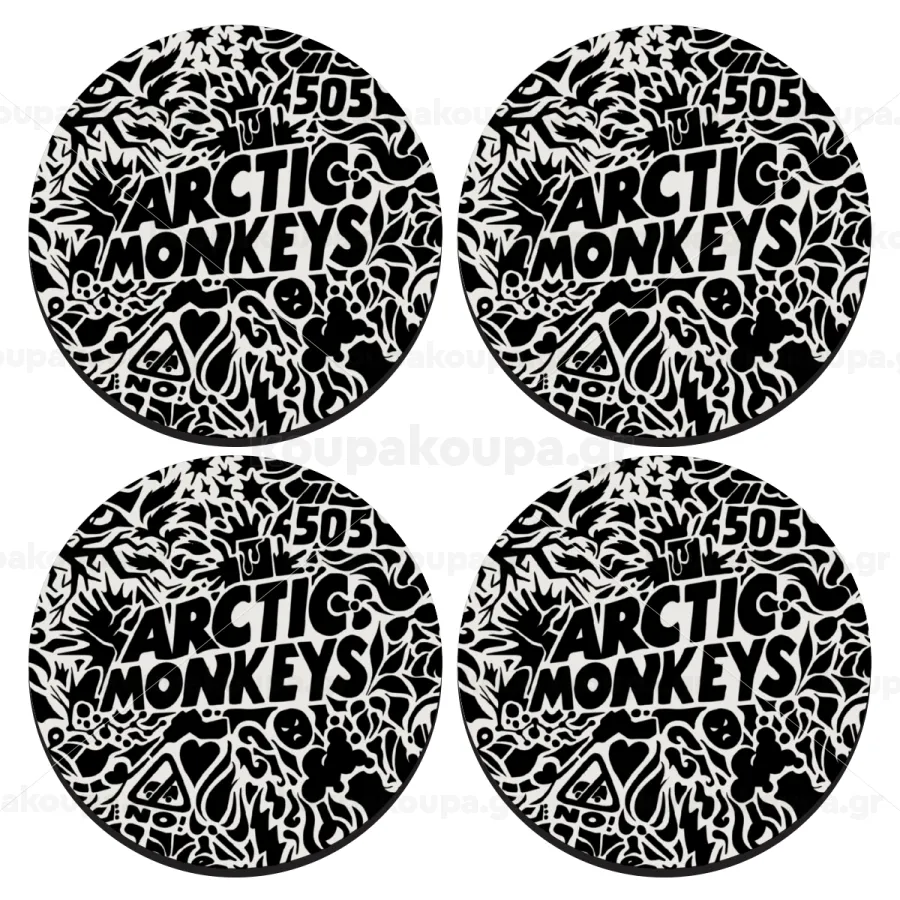 Arctic Monkeys, ΣΕΤ 4 Σουβέρ ξύλινα στρογγυλά (9cm)