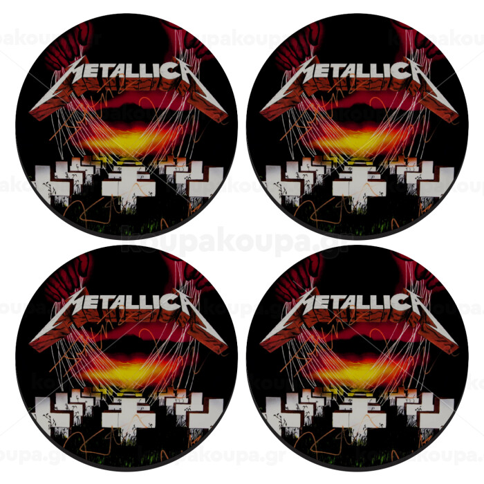 Metallica master of puppets, ΣΕΤ 4 Σουβέρ ξύλινα στρογγυλά (9cm)