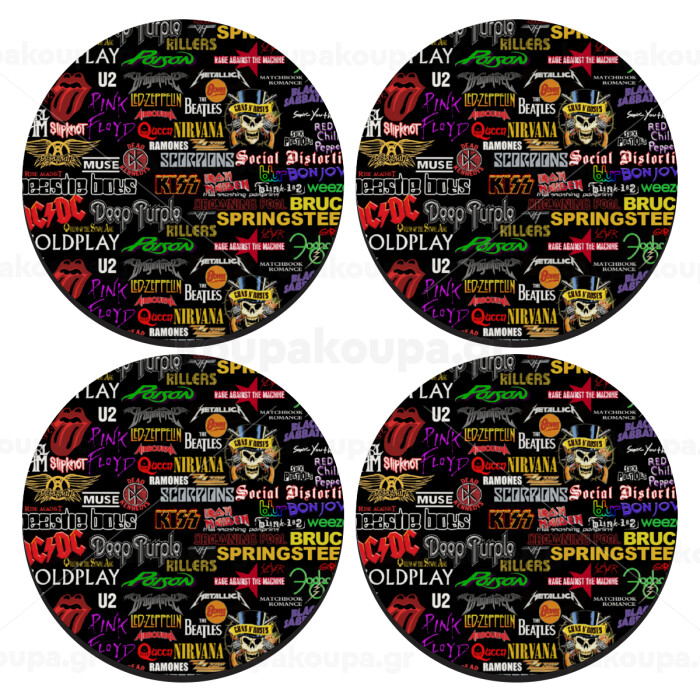 Rock Bands, ΣΕΤ 4 Σουβέρ ξύλινα στρογγυλά (9cm)