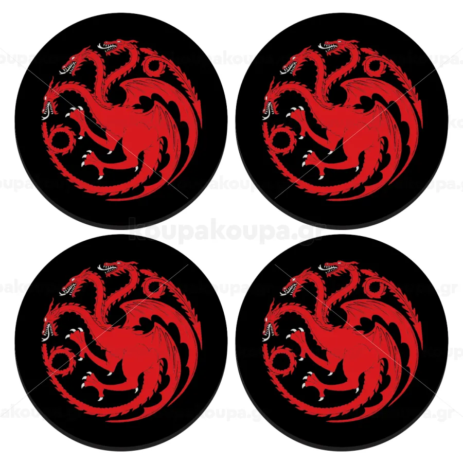 GOT House Targaryen, Fire Blood, ΣΕΤ 4 Σουβέρ ξύλινα στρογγυλά (9cm)
