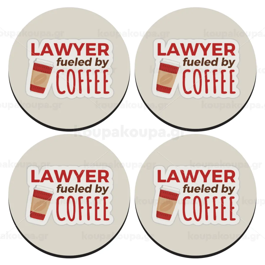 Lawyer fueled by coffee, ΣΕΤ 4 Σουβέρ ξύλινα στρογγυλά (9cm)