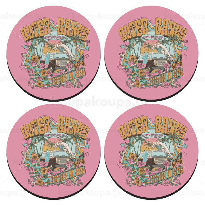 Outerbanks paradise on earth, ΣΕΤ 4 Σουβέρ ξύλινα στρογγυλά (9cm)
