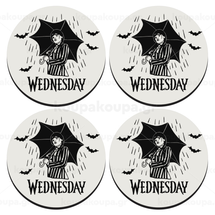 Wednesday Addams, ΣΕΤ 4 Σουβέρ ξύλινα στρογγυλά (9cm)