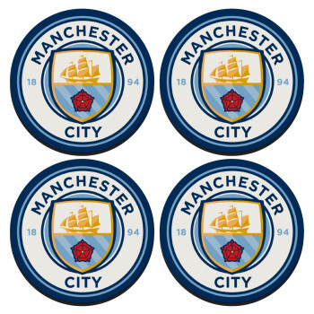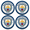 Manchester City FC , ΣΕΤ 4 Σουβέρ ξύλινα στρογγυλά (9cm)