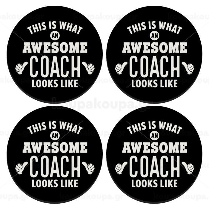 This is what an awesome COACH looks like!, ΣΕΤ 4 Σουβέρ ξύλινα στρογγυλά (9cm)